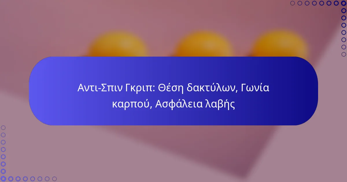 Αντι-Σπιν Γκριπ: Θέση δακτύλων, Γωνία καρπού, Ασφάλεια λαβής