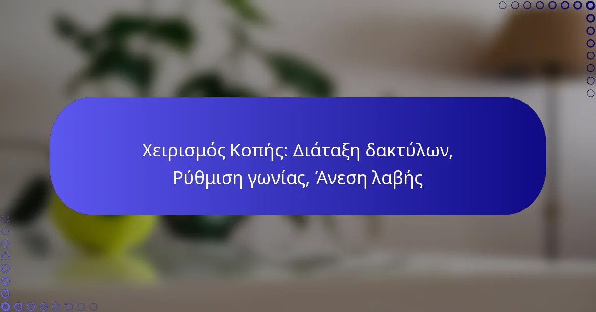 Χειρισμός Κοπής: Διάταξη δακτύλων, Ρύθμιση γωνίας, Άνεση λαβής