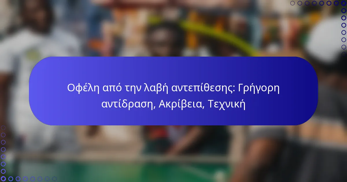Οφέλη από την λαβή αντεπίθεσης: Γρήγορη αντίδραση, Ακρίβεια, Τεχνική